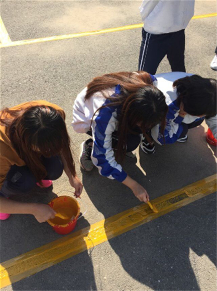 在許小明老師和韓松老師的指揮下,我們在操場劃分羽毛球場地。大家齊心協(xié)力,有的畫線條,有的拎著小桶用刷子填充顏色,手上、衣服上、鞋上都濺上了大大小小的油漆點(diǎn),儼然小小油漆工。班里幾名感冒的同學(xué)也不甘示弱,積極參與勞動中。就在大家忙得熱火朝天的時(shí)候,我們的班主任于萍老師走過來,她欣喜又驚奇的對原本生病的同學(xué)們說“看,你們的感冒都好多了!”因?yàn)榫驮谠绯?,我們剛剛喝了于萍老師給我們煮的愛心姜糖水。也許是勞動中的忙碌,也許是勞動中的集體協(xié)作,也許是勞動中收獲的快樂,也許勞動中得到的肯定,也許是看到自己勞動成果的喜悅,也許是感到能為自己生活的校園盡分力的滿足,一張張純真的笑臉在陽光下顯得分外的燦爛。