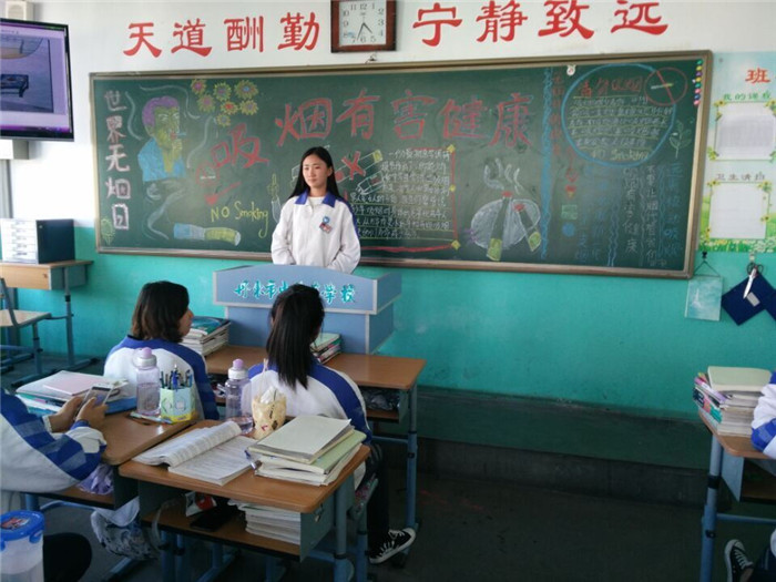 5月25日下午,我校播放了由吳明月老師、毛國娟老師及校電教中心的各位老師利用課余時(shí)間精心編輯制作而成的,以“莫讓香煙侵蝕生命”為主題的宣傳片。該宣傳片用大量的圖片、影像片段向同學(xué)們直觀地展示了吸煙對(duì)人身體及各種臟器功能的傷害,特別是針對(duì)我校女生較多的特點(diǎn),宣傳片用大量的篇幅重點(diǎn)講解了女生吸煙所帶來的健康隱患,由此教育引導(dǎo)全體師生珍愛生命、自律戒煙。通過觀看宣傳片,學(xué)生們對(duì)被動(dòng)吸煙及煙草煙霧對(duì)健康、環(huán)境、財(cái)產(chǎn)和公共安全的危害有了更深刻的認(rèn)識(shí)。宣傳片播放之后,全校各班級(jí)以“控?zé)熃麩?rdquo;為主題組織了富有教育意義的班會(huì)。班會(huì)中,同學(xué)們暢所欲言,不少吸煙的同學(xué)做了深刻的宣傳片觀后感發(fā)言,說出了自己真實(shí)的內(nèi)心感受,并呼吁大家為了自己及家人的健康,盡早戒煙。