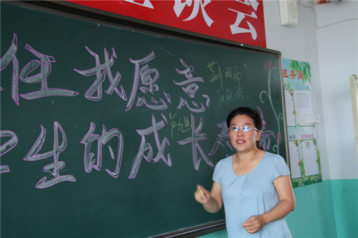 兩位老班主任的話給了新教師啟迪,荊羽西老師表示,雖然自己還沒有班主任的經(jīng)歷,但是經(jīng)過這次座談會,給了她膽量和信心,在未來的班主任工作中,要結合老教師的經(jīng)驗,發(fā)揮年輕教師思路活、勇于創(chuàng)新的特點,做出成績!崔保偉老師信心滿滿的說:“聽了老師們的發(fā)言,我感受到自己的責任很重。我會把學到的經(jīng)驗在實踐中靈活運用,盡快成長為優(yōu)秀的班主任。”務實的張雯老師,則現(xiàn)場提出了“如何確立班委?班級的獎懲措施怎樣制定?”兩個問題,都得到了滿意的回答。最后,每位班主任在“我是班主任我愿意為學生的成長負責”的黑板上莊重的簽下自己的名字。