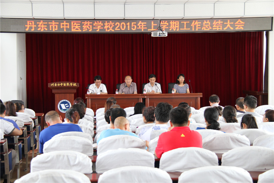 7月17日上午,我校在七樓報告廳召開“丹東市中醫(yī)藥學校2015年上學期工作總結(jié)大會”,常務副校長宮國仁主持會議,全體教職工參加大會。
