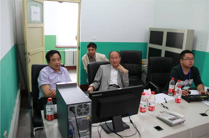 市衛(wèi)計(jì)委于學(xué)詩(shī)副主任,中醫(yī)藥學(xué)校張亞富校長(zhǎng)、宮國(guó)仁副校長(zhǎng)在監(jiān)控室觀察考場(chǎng)情況