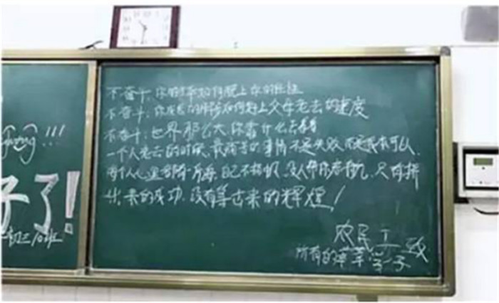 河南省實驗中學開學第一天,一名農民工留在黑板上的寄語——