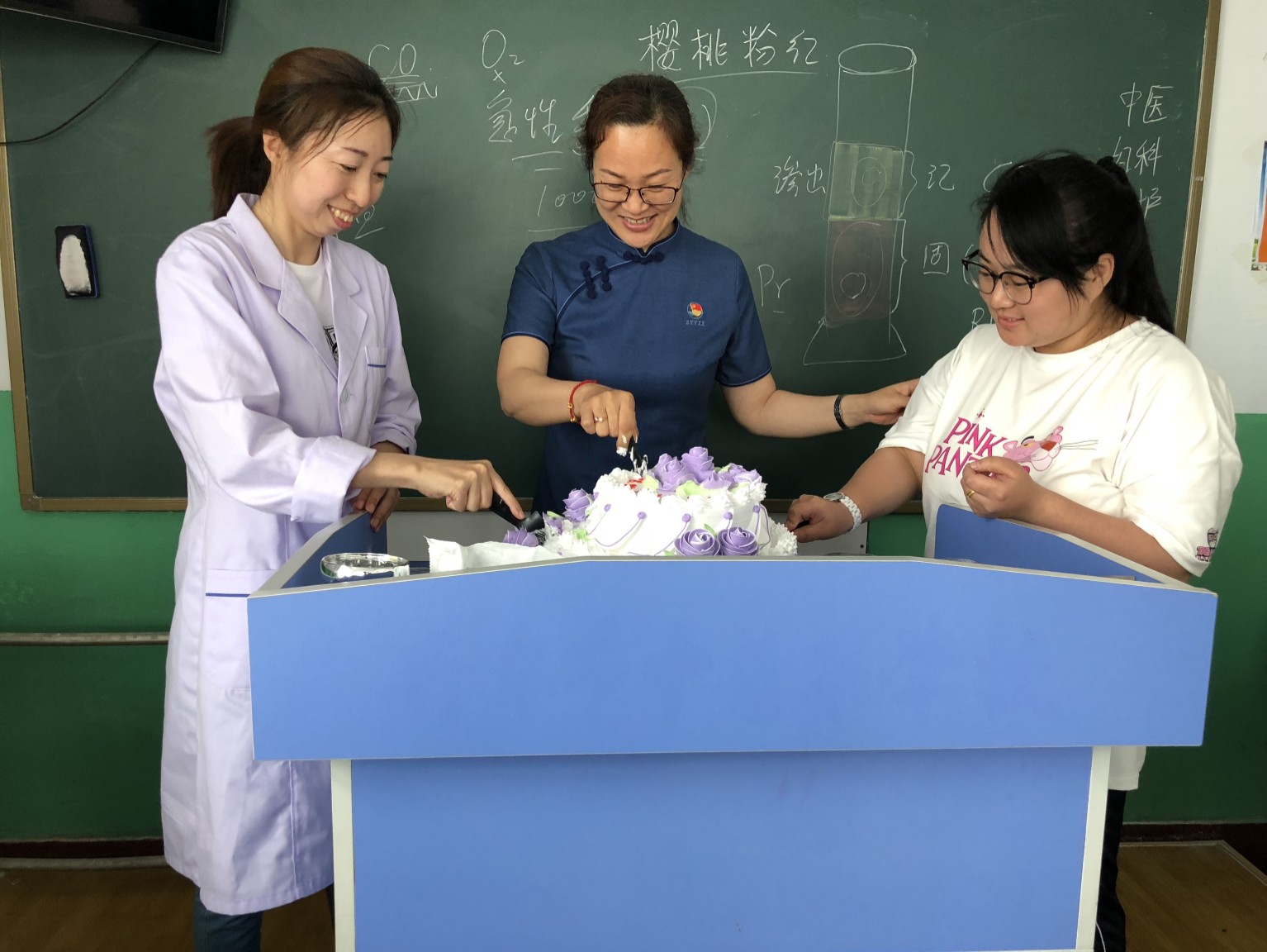 在活動(dòng)中,董軍主任發(fā)表了感人至深的講話,表達(dá)了對(duì)16級(jí)9班全體同學(xué)在本學(xué)期各方面進(jìn)步的肯定,希望同學(xué)們繼續(xù)努力、堅(jiān)持到底、保持成績(jī),并提出了備戰(zhàn)期末考試的新目標(biāo)與新要求。在全體學(xué)生的注目下,班主任劉曉茜老師親手將流動(dòng)紅旗掛在班級(jí)門口。活動(dòng)最后,由董軍主任,劉曉茜老師,裴智慧同學(xué),共同切開(kāi)慶賀蛋糕,讓全體學(xué)生品嘗勝利的喜悅。